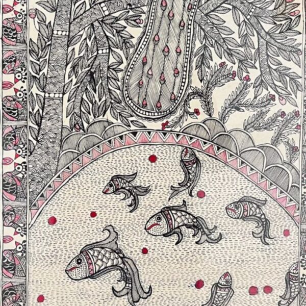 Madhubani Art – Traditional Tree & Figures Folk Painting
