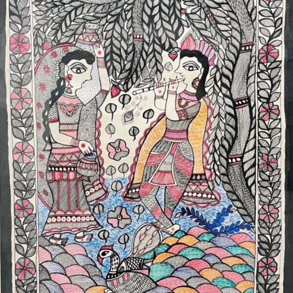 Madhubani Art – Radha Krishna Traditional Mithila Folk Painting