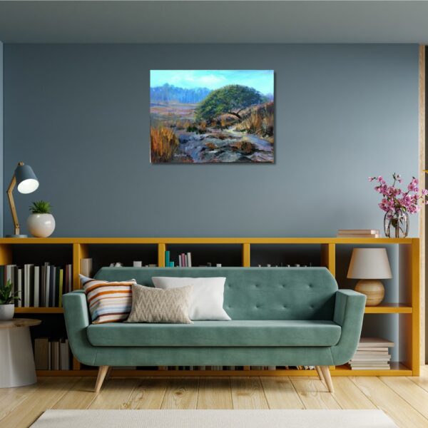 Luxury floral canvas painting with golden frame displayed in a modern living room – poppy flower wall art by Artzera Gallery