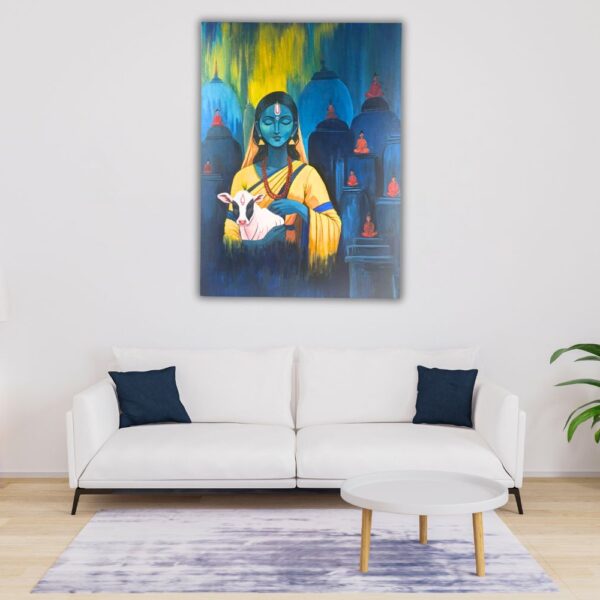 Sadhvi with Calf full view – acrylic painting by ArtZera