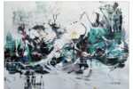 Abstract Landscape with Rising Sun is a vibrant acrylic painting that blends the beauty of nature with expressive abstraction. Bold strokes of green, blue, and white suggest flowing water and lush foliage, while a radiant orange sun at the center reflects warmth across the canvas.