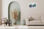 Fragments of Light and Time abstract lotus painting displayed above a modern bed in a stylish bedroom – Artzera Gallery wall art