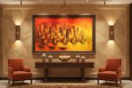 Luxury floral canvas painting with golden frame displayed in a modern living room – poppy flower wall art by Artzera Gallery