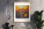 lose-up of Eternal Bloom painting showing golden lotus with inner flame, symbol of purity and spiritual awakening.