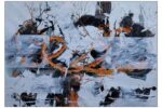 Ember Veins is a striking abstract painting that fuses fiery orange streaks with deep blacks and layered whites, creating the impression of molten energy coursing through a frozen landscape.