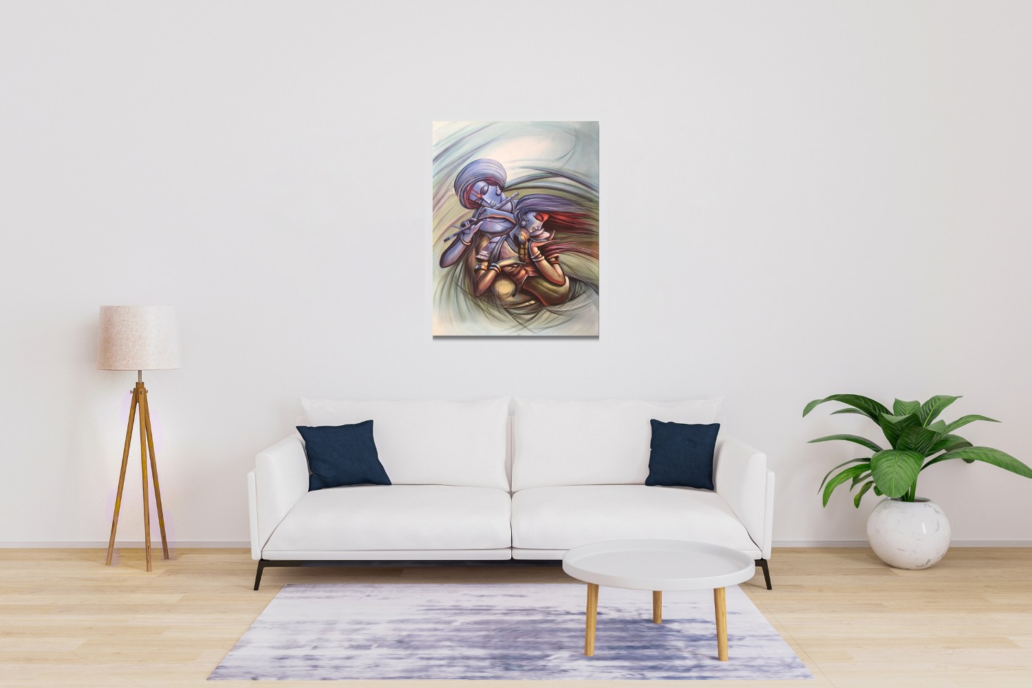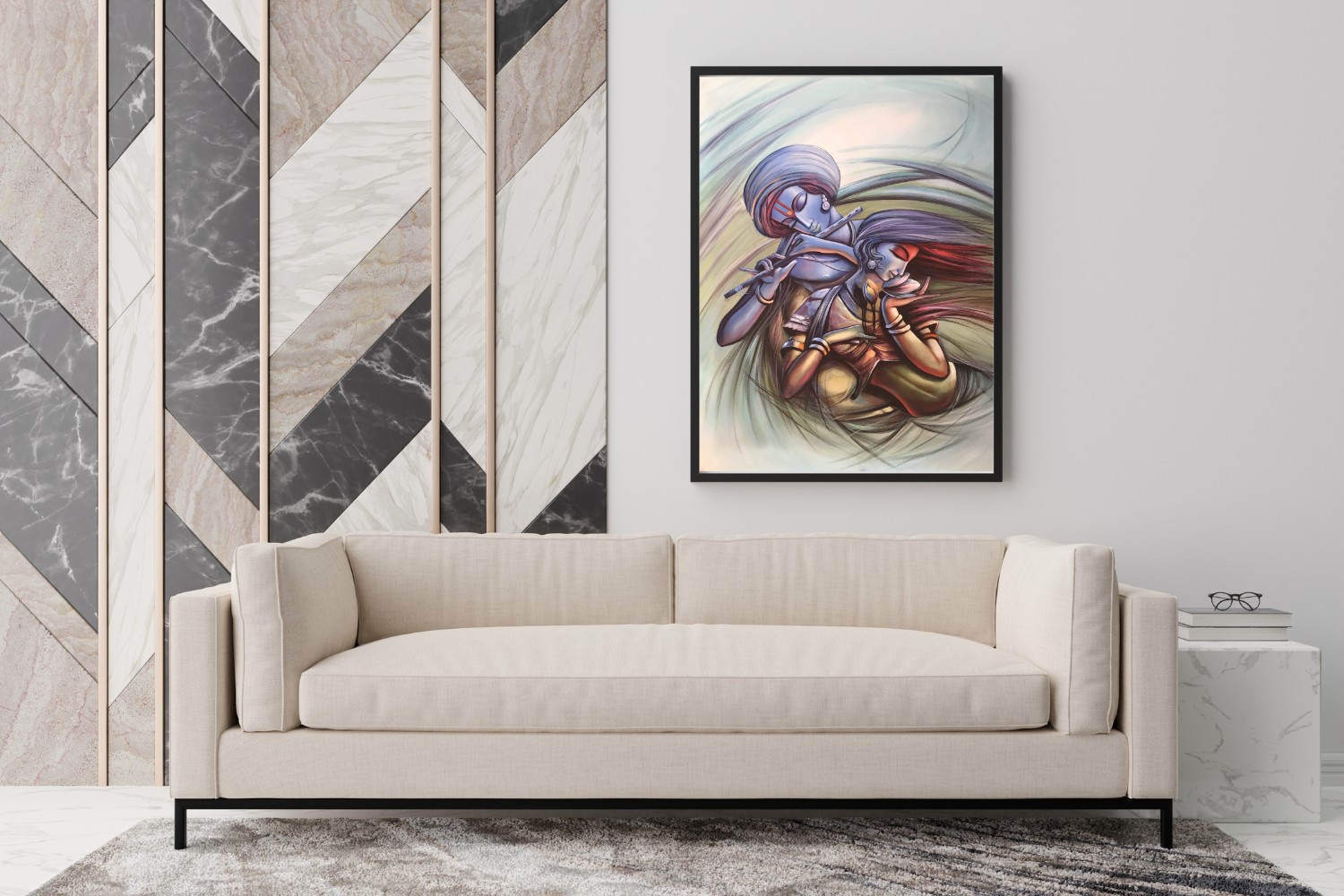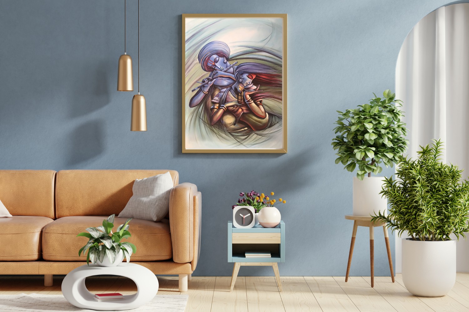 This painting beautifully portrays the timeless bond of love, music, and divinity that transcends the material world, making it a soulful centerpiece for any home, meditation space, or art collection.