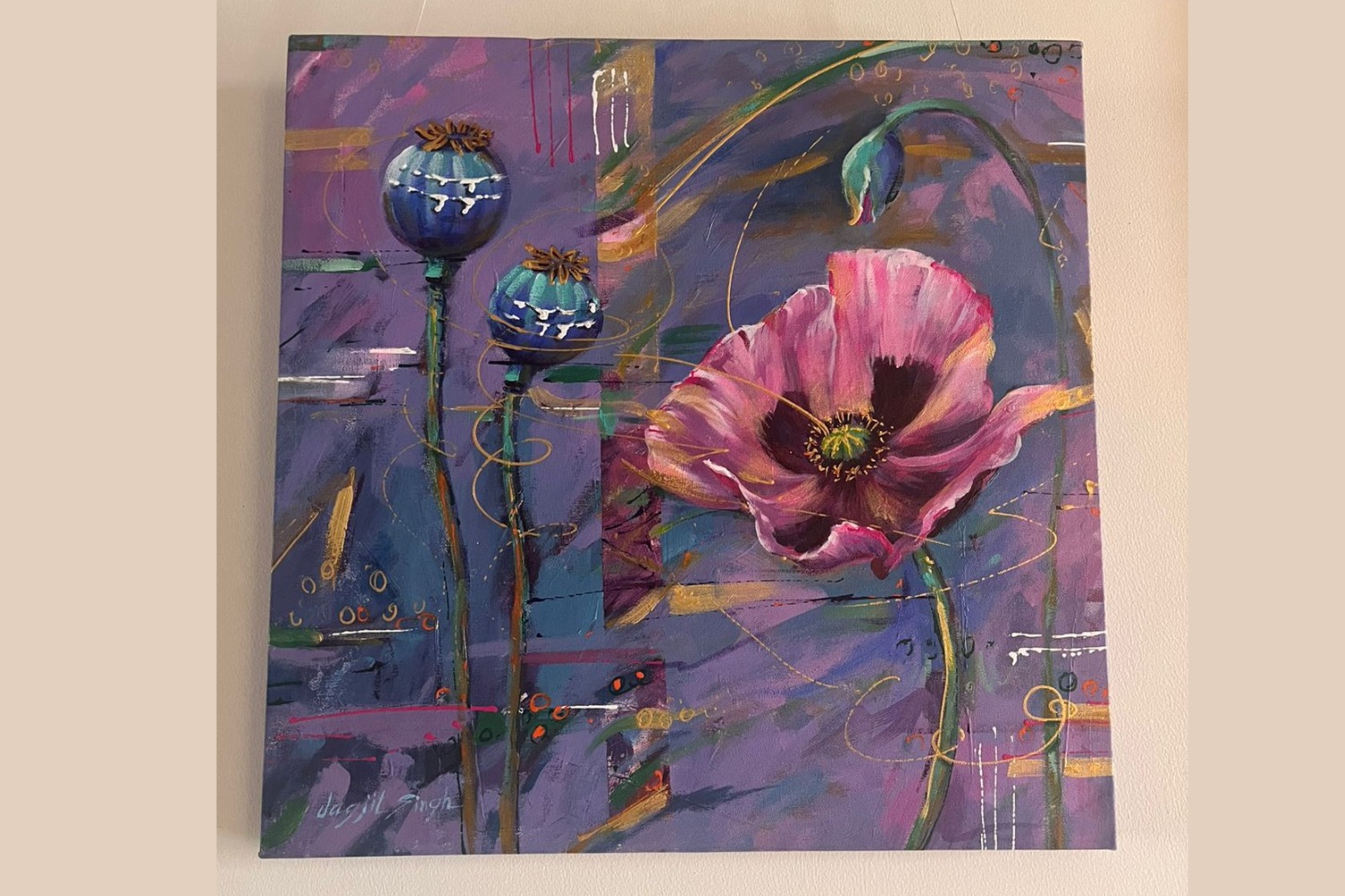Petals of Promise is a beautiful 24×24 inch acrylic painting that captures the delicate beauty of a red flower mid-bloom. The layered petals, enhanced by soft sunlight yellow and earthy tones, create a sense of warmth and optimism. The dreamy purple and blue background adds depth, evoking feelings of serenity and hope. This artwork is a reminder that growth is a continuous process, and beauty emerges even in subtle moments of change.