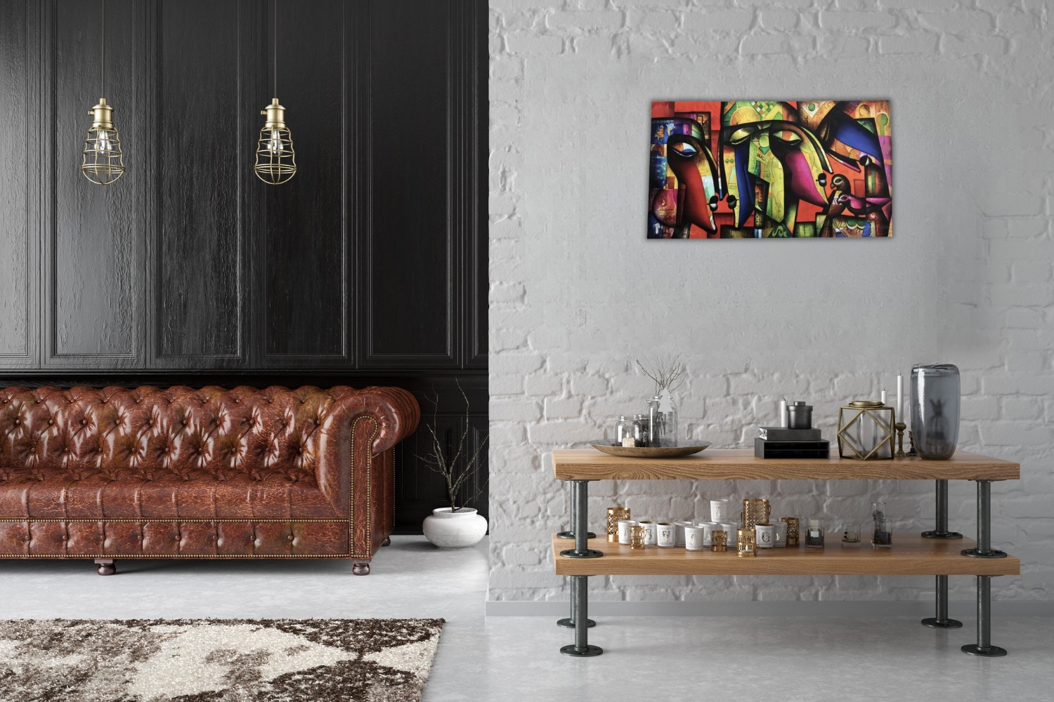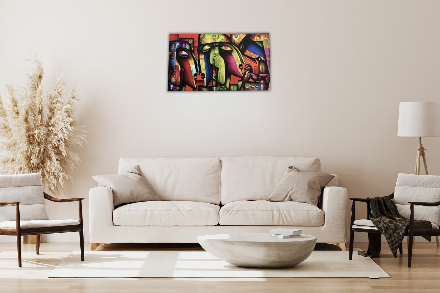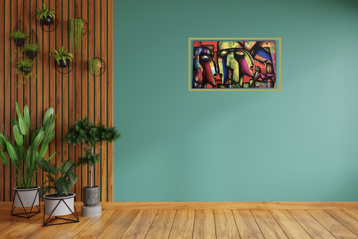 Voices of Expression is a vibrant abstract painting that portrays human faces and birds intertwined in a symbolic dialogue. Through bold geometric shapes and vivid hues of red, blue, and green, the artwork explores the beauty and complexity of communication. The overlapping forms reflect how language connects people beyond boundaries, while the birds represent freedom of expression and the universality of human connection. This piece celebrates creativity, unity, and the expressive power of art itself.