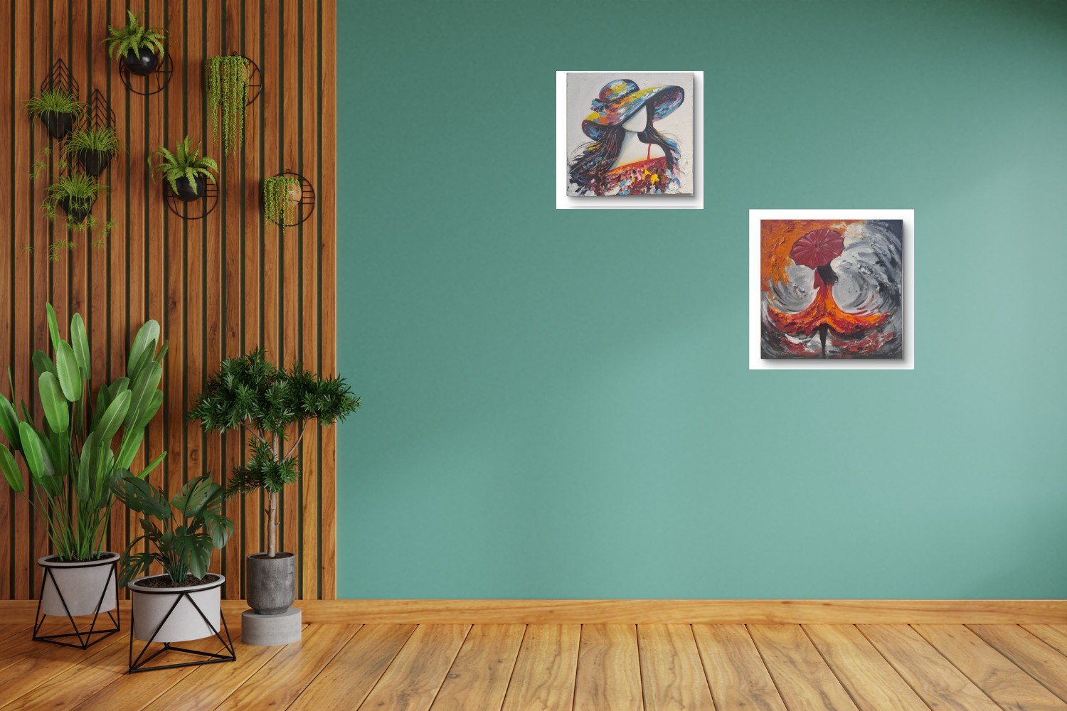 Together, these artworks create a harmonious balance — one representing inner strength and movement, the other serene charm and quiet beauty. Ideal for modern interiors, this duo adds both dynamism and sophistication to any wall.